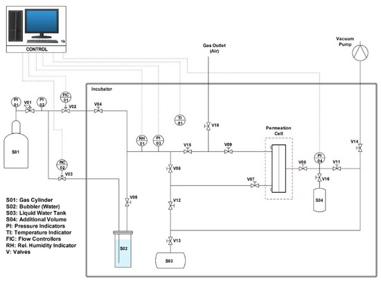 In this work, permeability and ideal selectivity were measured through the permeation apparatus schematized in Figure 4.