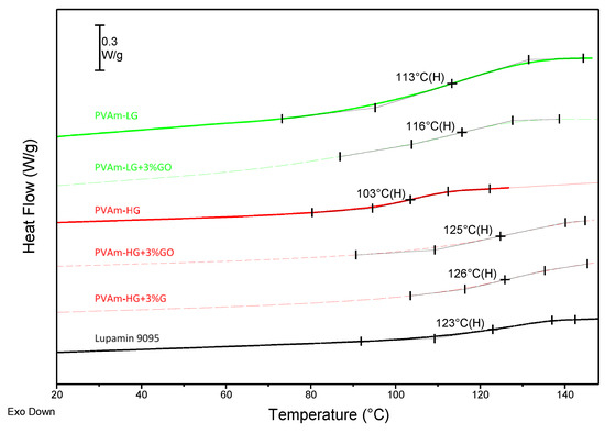 Interestingly, the degree of purification and nanofiller loading affected the glass transition temperature (Tg) of the films, as shown by DSC analyses reported in Figure 7.