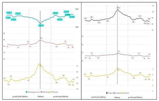 The following are available online at https://www.mdpi.com/2077-0383/10/1/8/s1. Video S1: HR: In timeline and stage and events during labor and delivery; Video S2: SVR: In time line and stage and events during labor and delivery; Video S3: MAP: In time line and stage and events during labor and delivery. Video S4: CO: In timeline and stage and events during labor and delivery; Video S5: CO: In time line and stage and events during labor and delivery.