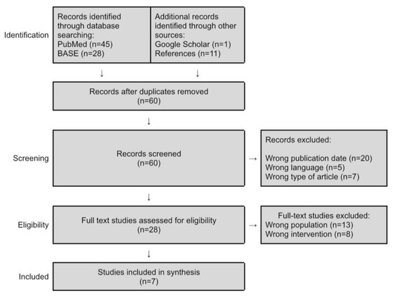 Searching medical databases, Google Scholar article databases, and references yielded a total of 85 records. The subsequent selection steps according to the PRISMA protocol are presented in Figure 1 [].