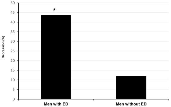 As shown in Figure 1, depression was reported by 14 out of the 32 (43.7%) men with ED and only by 3 out of the 25 men (12.0%) without ED (p = 0.002).