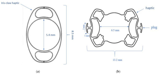 - Forlini, M.; Soliman, W.; Bratu, A.; Rossini, P.; Cavallini, G.M.; Forlini, C. Long-term follow-up of retropupillary iris-claw intraocular lens implantation: A retrospective analysis. BMC Ophthalmol. 2015, 15, 143. [Google Scholar] [CrossRef] [PubMed]