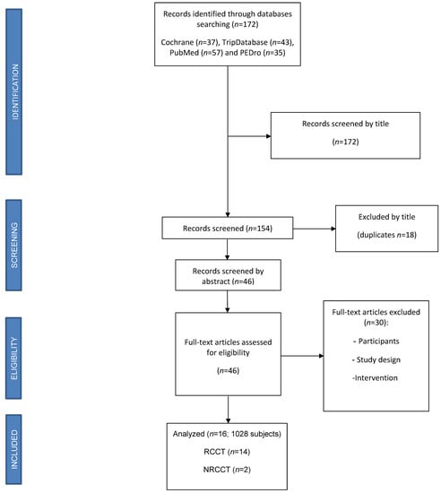 Via the databases search, 172 articles have been identified. Of these, after first screening based on title, abstracts and duplicates, 46 articles have been submitted to a second screening. After the full text reading, according to out exclusion criteria, 16 studies were eligibility for this review, with a total amount of 1028 patient (Figure 1).