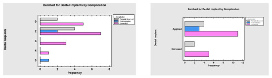 Frequency Table for Dental Implants by Complication, showing that those cases requiring tooth removal, premaxilla resection and partial bone loss of the graft received dental implant treatment, p = 0.005.
