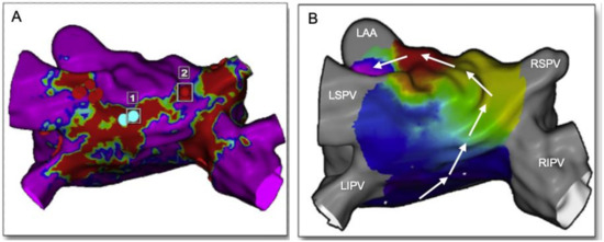 - Explanation of the single (or multiple) arrhythmia mechanisms in each patient. Often, also during the ablative procedure, it is not possible to discern between ectopic (triggered) activity and/or re-entry. Furthermore, before the procedure, it is not possible to define AF as pulmonary vein (PV)-dependent vs. non-PV-dependent. New technologies, including integration between imaging and ECG and using artificial intelligence, are promising in this sense [69];