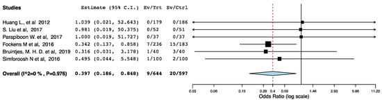 Forest plot: ureteric obstructions or stenoses (ERAS vs. traditional perioperative care).