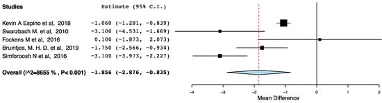 Forest plot: length of hospital stays (ERAS—traditional perioperative care). Only studies reporting LOS as mean ± SD where included in this meta-analysis.