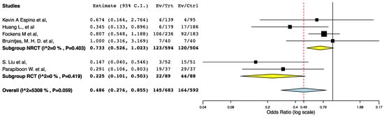 We observed significant statistical heterogeneity in the meta-analysis for the incidence of urological complications. Being considerate of the fact that non-randomized data carry high risk of recall and selective reporting bias, we preformed subgroup meta-analyses of the randomized and non-randomized studies to explore the abovementioned heterogeneity. As illustrated in Figure 12, the subgroup meta-analysis of the RCTs included in the present systematic strongly supported that enhanced recovery after renal transplantation is associated with decreased incidence of urological complications (Level I evidence).