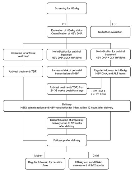 - Ayoub, W.S.; Cohen, E. Hepatitis B Management in the Pregnant Patient: An Update. J. Clin. Transl. Hepatol. 2016, 4, 241–247. [Google Scholar] [CrossRef] [PubMed]