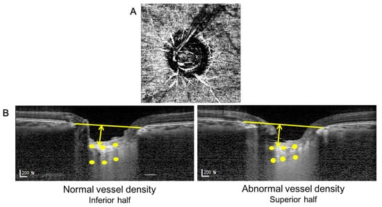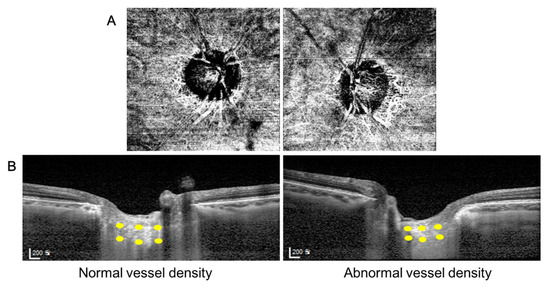 - Akagi, T.; Iida, Y.; Nakanishi, H.; Terada, N.; Morooka, S.; Yamada, H.; Hasegawa, T.; Yokota, S.; Yoshikawa, M.; Yoshimura, N. Microvascular Density in Glaucomatous Eyes with Hemifield Visual Field Defects: An Optical Coherence Tomography Angiography Study. Am. J. Ophthalmol. 2016, 168, 237–249. [Google Scholar] [CrossRef]