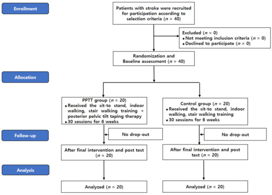 In T-s, Jung J-h, Kim M, Jung K-s, Cho H-y. Effect of Posterior Pelvic Tilt Taping on Pelvic Inclination, Muscle Strength, and Gait Ability in Stroke Patients: A Randomized Controlled Study. Journal of Clinical Medicine. 2021; 10(11):2381. https://doi.org/10.3390/jcm10112381