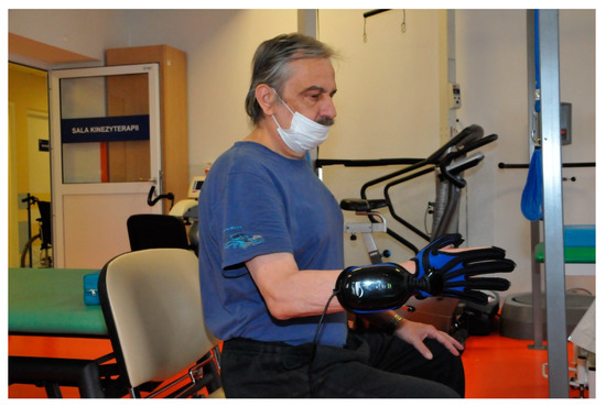 The stabilization of the human body is the basis for maintaining balance and makes it possible to perform selective, coordinated movements with parts of the body [12,13,14,15,16,17]. There are several elements to the body’s stability: central stabilization, which concerns the proper tension and work of the deep muscles of the trunk, and a stable trunk [16,17,18]. According to Bobath’s concept, a stable trunk is a counterbalance to the movements of all limbs [19,20]. It is very important that the trunk is stable and mobile at the same time, because only then can any selective movement be made [15,19,21]. In addition to arm and hand motor function deficits, trunk movement coordination disorders have been observed in patients with stroke [22]. In particular, movement of the lower limb is associated with contraction of the abdominal muscles, which stabilize the spine [23]. Stabilization of the human body is essential for maintaining balance and allows coordinated movements of body parts, including the human radio-carpal joint and palm [24]. For example, a previous study showed that the position of the forearm was particularly important for achieving higher grip strength: better parameters were noted in the transverse position and the lateral plane compared to the plane consistent with the body axis and horizontal position [25]. Similarly, Okunribidi et al. found that stabilization of the forearm was particularly important for achieving higher grip strength in healthy subjects [25]. Stabilization was also key for the restoration of the correct movement pattern and for regaining function of the hand in patients with impaired motor coordination [26,27]. Similarly, passive stabilization of the trunk core may also assist in improving hand motor function following a stroke. Precise hand movements also rely on the proper functioning and position of the shoulder blade, and stroke patients often show a weakness of the shoulder (scapular) stabilizers [28,29]. The supraspinatus muscle of the shoulder plays an important role in the abduction, flexion and external rotation of the arm. Brunnstrom (1970) in her book recalls the Souque’s phenomenon, discovered by him in 1916 and consisting in that elevation of the affected arm frequently caused the paralyzed finger to extend [30]. A different study has shown that elbow joint control is dependent on shoulder abduction and the strength of shoulder abduction affects the elbow-flexion torque and, with that, the reaching range of motion (work area) in patients after stroke [31]. Nijland, et.al. in 2010 presented a paper on the basis of which they determined functional recovery of the hemiplegic arm at 6 months can be predicted early in a hospital stroke unit within 72 h after stroke onset, using two simple tests, finger extension and shoulder abduction [32]. Tanzarella et al. (2020), presented a non-invasive command study structure for draining up to 14 external and internal hand muscles. They extended previous research (limited to a few muscles) on a common synaptic signal in pools of motor neurons in a large number of muscles. The results showed that the component of the set of decoded spine trains of motor neurons was positively correlated with the force for all subjects and tasks. By grouping pools of motor neurons from external or internal muscles, a score correlated with strength was also obtained. These observations show low-dimensional control of motor neurons in many muscles, which can be used to extract control signals in nerve coupling, which can help in hand rehabilitation, e.g., control of the exoskeleton of the hand in patients after stroke, among others [33]. Modern devices used for therapy often use the principle of biofeedback. Biofeedback engages the brain to work, as a result of which the brain begins to learn, finding new possibilities to control, for example, muscles deprived of central control of movements [34,35]. The results of the study conducted by Delph et al. (2013) showed that by far the most popular type of device among those analyzed in the study was a device that used a pneumatic actuator to direct the flexion/extension of the finger [36]. To improve the function of the hand, transcranial magnetic stimulation with the use of non-invasive devices is also used. A randomized, double-blind study showed an increase in the physiological activity of the brain in the areas near the stroke [37,38]. Thanks to this, it is possible to improve many functions and motor activities, such as hand pressure and movements of the upper limbs as well walking speed [39]. Nevertheless, post-stroke patients have limitations in the movement of the distal upper limb. Especially in extending the wrist and fingers, due to the lack of, decreased or increased tension of a spastic nature.