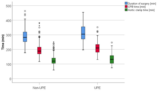 | Aortic clamp time (min) | 122 (105–145) | 120 (105–140) | 132 (104–158) | 0.031 |