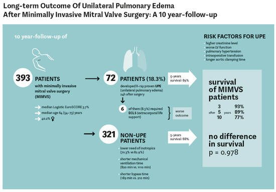 Puehler, T.; Friedrich, C.; Lutter, G.; Kornhuber, M.; Salem, M.; Schoettler, J.; Ernst, M.; Saad, M.; Seoudy, H.; Frank, D.; et al. Outcome of Unilateral Pulmonary Edema after Minimal-Invasive Mitral Valve Surgery: 10-Year Follow-Up. J. Clin. Med. 2021, 10, 2411. https://doi.org/10.3390/jcm10112411