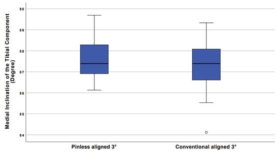 Figure 6 presents boxplots, which show the range of medial inclination for navigation and conventional groups.