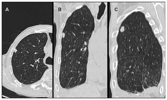- Lococo, F.; Marchesini, G.; Taddei, S.; Rapicetta, C. An insidious cause of spontaneous pneumothorax in an elderly woman. Eur. J. Cardio Thoracic Surg. 2015, 49, e63–e64. [Google Scholar] [CrossRef] [PubMed][Green Version]