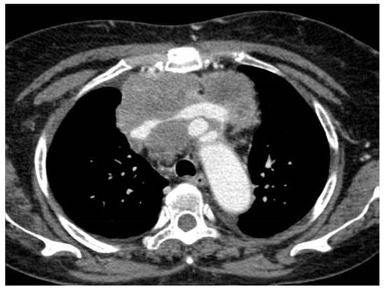 - Hassan, I.; Goolam-Mahomed, A. An unusual cause of an anterior mediastinal mass. Respir. Med. Case Rep. 2014, 12, 52–54. [Google Scholar] [CrossRef]