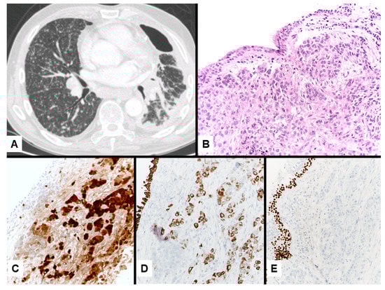 - Miettinen, M.; Sarlomo-Rikala, M. Expression of Calretinin, Thrombomodulin, Keratin 5, and Mesothelin in Lung Carcinomas of Different Types. Am. J. Surg. Pathol. 2003, 27, 150–158. [Google Scholar] [CrossRef]