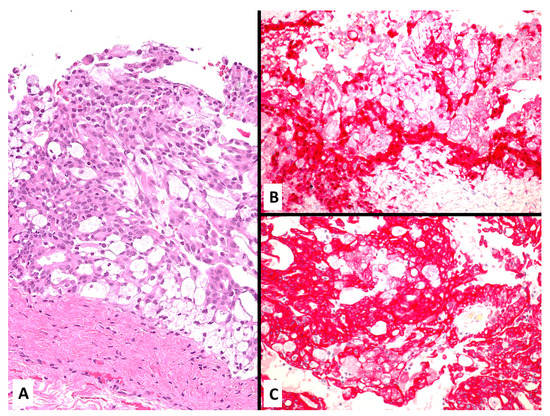 - Manur, R.; Lamzabi, I. Aberrant Cytokeratin 20 Reactivity in Epithelioid Malignant Mesothelioma: A Case Report. Appl. Immunohistochem. Mol. Morphol. 2019, 27, e93–e96. [Google Scholar] [CrossRef]