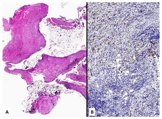 - Dacic, S.; Le Stang, N.; Husain, A.; Weynand, B.; Beasley, M.B.; Butnor, K.; Chapel, D.; Gibbs, A.; Klebe, S.; Lantuejoul, S.; et al. Interobserver variation in the assessment of the sarcomatoid and transitional components in biphasic mesotheliomas. Mod. Pathol. 2019, 33, 255–262. [Google Scholar] [CrossRef]