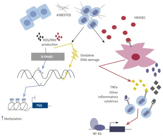 - Yang, H.; Rivera, Z.; Jube, S.; Nasu, M.; Bertino, P.; Goparaju, C.; Franzoso, G.; Lotze, M.T.; Krausz, T.; Pass, H.I.; et al. Programmed necrosis induced by asbestos in human mesothelial cells causes high-mobility group box 1 protein release and resultant inflammation. Proc. Natl. Acad. Sci. USA 2010, 107, 12611–12616. [Google Scholar] [CrossRef]