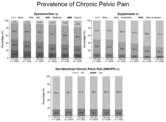 - Ayorinde, A.A.; Bhattacharya, S.; Druce, K.L.; Jones, G.T.; Macfarlane, G.J. Chronic Pelvic Pain in Women of Reproductive and Post-Reproductive Age: A Population-Based Study. Eur. J. Pain Lond. Engl. 2017, 21, 445–455. [Google Scholar] [CrossRef] [PubMed]