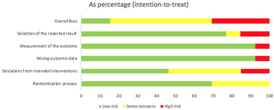 - Sterne, J.A.C.; Savović, J.; Page, M.J.; Elbers, R.G.; Blencowe, N.S.; Boutron, I.; Cates, C.J.; Cheng, H.-Y.; Corbett, M.S.; Eldridge, S.M.; et al. RoB 2: A revised tool for assessing risk of bias in randomised trials. BMJ 2019, 366, l4898. [Google Scholar] [CrossRef] [PubMed]