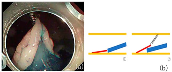 - Oyama, T. Counter Traction Makes Endoscopic Submucosal Dissection Easier. Clin. Endosc. 2012, 45, 375–378. [Google Scholar] [CrossRef] [PubMed]
