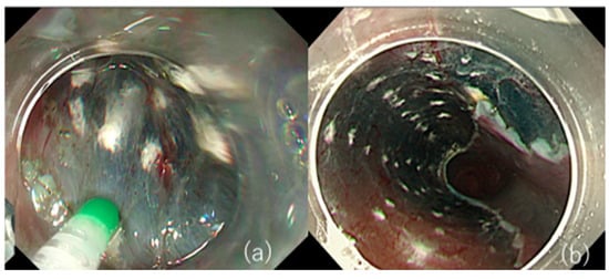 - Yamashita, S.; Kato, M.; Fujimoto, A.; Maehata, T.; Sasaki, M.; Inoshita, N.; Sato, H.; Suzuki, K.; Yahagi, N. Inadequate Steroid Injection after Esophageal ESD Might Cause Mural Necrosis. Endosc. Int. Open 2019, 7, E115–E121.e21. [Google Scholar] [CrossRef]
