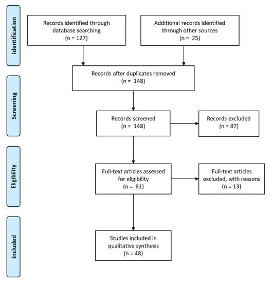 - Moher, D.; Liberati, A.; Tetzlaff, J.; Altman, D.G.; Group, P. Preferred reporting items for systematic reviews and meta-analyses: The PRISMA statement. PLoS Med. 2009, 6, e1000097. [Google Scholar] [CrossRef]
