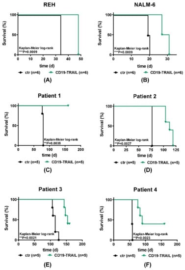 - Alves, C.C.; Terziyska, N.; Grunert, M.; Gündisch, S.; Graubner, U.; Quintanilla-Martinez, L.; Jeremias, I. Leukemia-initiating cells of patient-derived acute lymphoblastic leukemia xenografts are sensitive toward TRAIL. Blood 2012, 119, 4224–4227. [Google Scholar] [CrossRef][Green Version]