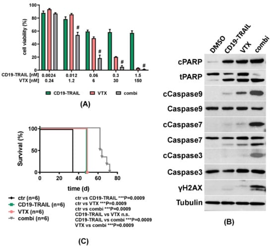 3.4. The Cytotoxic Effect of CD19-TRAIL Is Synergistically Enhanced by Venetoclax in BCP-ALL Cells
