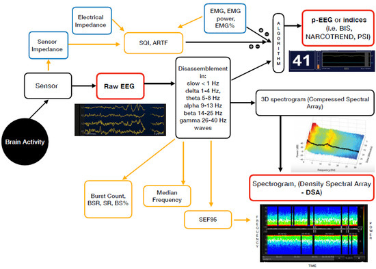 - De Heer, I.J.; Bouman, S.J.M.; Weber, F. Electroencephalographic (EEG) density spectral array monitoring in children during sevoflurane anaesthesia: A prospective observational study. Anaesthesia 2019, 74, 45–50. [Google Scholar] [CrossRef]