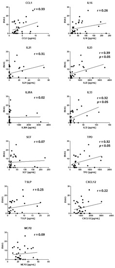 3.2. Correlations of Plasma Cytokines and Disease Activity