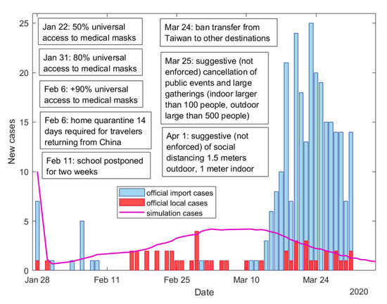 - Jian, S.W.; Cheng, H.Y.; Huang, X.T.; Liu, D.P. Contact tracing with digital assistance in Taiwan’s COVID-19 outbreak response. Int. J. Infect. Dis. 2020, 101, 348–352. [Google Scholar] [CrossRef] [PubMed]