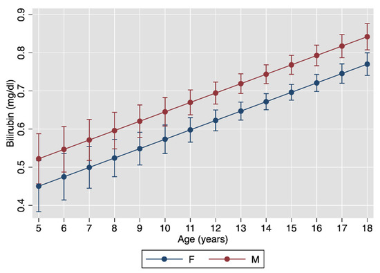 Little is known about the association between bilirubin and MS in children and adolescents. In a representative sample of the non-institutionalized civilian US population (NHANES), Lin et al. examined 4723 children and adolescents aged 12 to 17 years and identified 190 (4%) with MS. Serum total bilirubin was significantly higher in subjects without MS than in those with it. The authors speculated that in young subjects, when the metabolic dysregulation is in its early stages, bilirubin may exert its anti-oxidative effect within the tissues. Serum bilirubin levels, even within the normal range, might have graded associations with the prevalence of MS in children [37]. Similar results have also been reported in other studies conducted in Chinese [28,70], Korean [27,71], and Polish [57] adults.