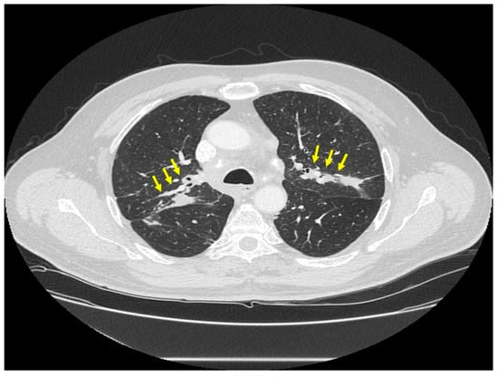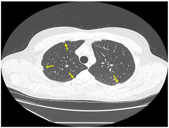 - Hashimoto, M.; Watanabe, O.; Sato, K.; Endo, K.; Heianna, J.; Itoh, I.; Watarai, J. The CT findings of pulmonary sarcoidosis. Tohoku J. Exp. Med. 1996, 179, 259–266. [Google Scholar] [CrossRef] [PubMed][Green Version]