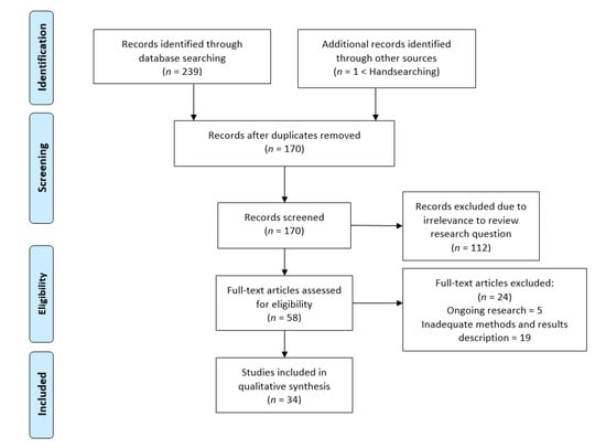 Thirty-four studies were included in this scoping review. The process of their selection is provided in detail in Figure 1.
