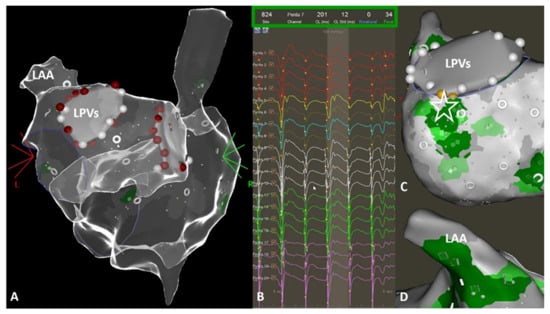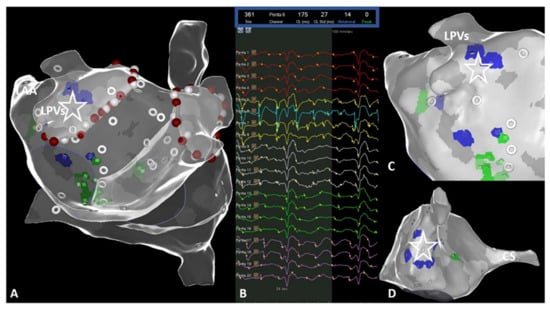 Catheter ablation for persistent atrial fibrillation (AF) is challenging and associated with limited outcomes [1]. The mechanisms initiating and perpetuating AF are still not completely understood and therefore, ablation strategies are heterogeneous. Several observations have led to individual mechanistic insights in AF management and arrhythmia-associated cardiac remodeling which emphasize the need for personalized paths in AF therapy [2,3]. Despite improvements in ablation technology, imaging modalities, and ablation techniques, the recurrence of atrial arrhythmias after AF ablation still remains frequent [1,4]. Advances in mapping technologies have allowed for more detailed approaches, including panoramic and body-surface mapping for potential individual focal AF driver or rotational activity [5,6,7,8]. The elimination of these phenomena has also been linked to higher ablation success [9,10]. Recently, the CARTOFINDER module was introduced as a potential novel approach to improve the understanding of individual arrhythmia substrates based on panoramic mapping. On the basis of this technology, focal and rotation activity can be revealed during sustained atrial arrhythmias and directly visualized inside the electroanatomical mapping system to guide ablation.