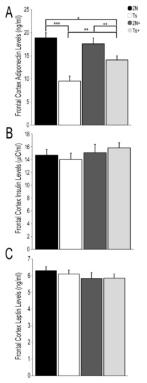 - Zhang, D.; Wang, X.; Lu, X.-Y. Adiponectin Exerts Neurotrophic Effects on Dendritic Arborization, Spinogenesis, and Neurogenesis of the Dentate Gyrus of Male Mice. Endocrinology 2016, 157, 2853–2869. [Google Scholar] [CrossRef]