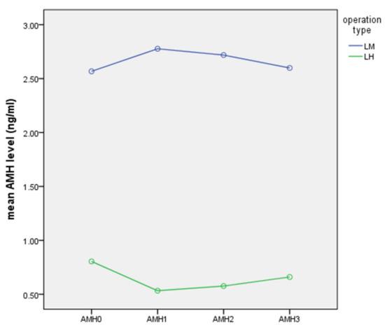 Comparing serial AMH levels within each group by ANOVA revealed that AMH changes were not statistically significant in the LH (p = 0.468) and LM (p = 0.998) groups.