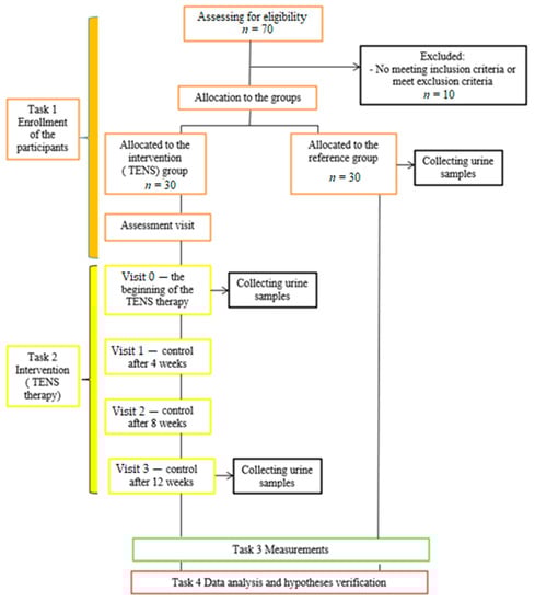 To the best of our knowledge, our study represents the first investigation of the relationships between TENS therapy and neurotrophins. The role of neurotransmitters excreted in the urine as biomarkers of the effectiveness of TENS therapy in children reporting OAB symptoms has not been described. The research at hand aimed to systematically describing how TENS influences the concentrations of neurotrophins and the clinical outcome in children with OAB. The detailed research goals included: