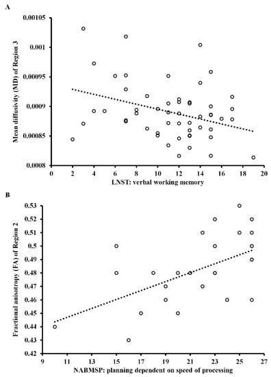 3.4. Relationship between DTI Measures and Cognitive Functions