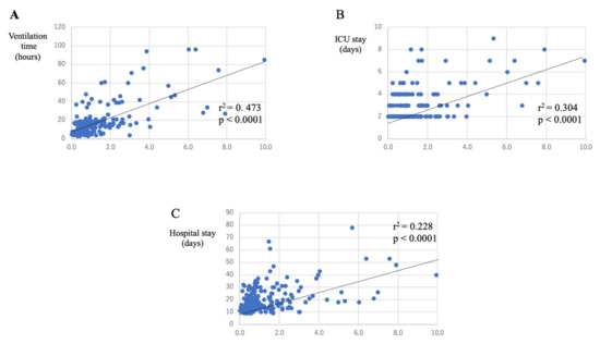 3.3. Relationship between Post-CPB Pulmonary Function and Postoperative Course