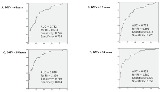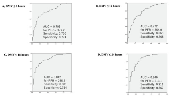 3.4. ROC Analysis between Pulmonary Functions at Two Hours after CPB and DMV