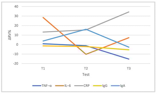 | IgA (T0–T3) | −0.058; p = 0.882 | 0.203; p = 0.601 | 0.092; p = 0.813 | 0.551; p = 0.124 |
