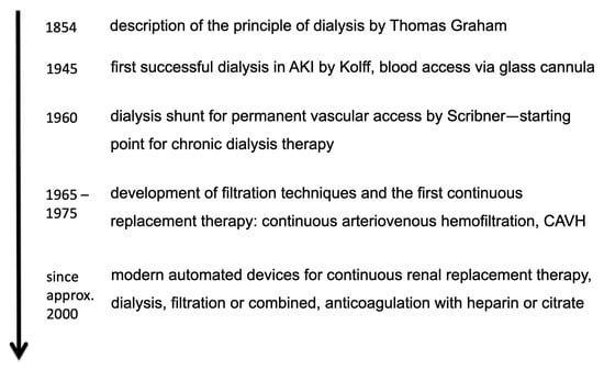 Renal replacement therapy was developed to delay acute death from complications of AKI—at least for a certain time. Since the first successful dialysis in 1945, hardly anything has changed in terms of the objectives of renal replacement therapy. It is true that the further development of dialysis machines and materials led to a significant reduction in mortality from the complications associated with the dialysis itself.