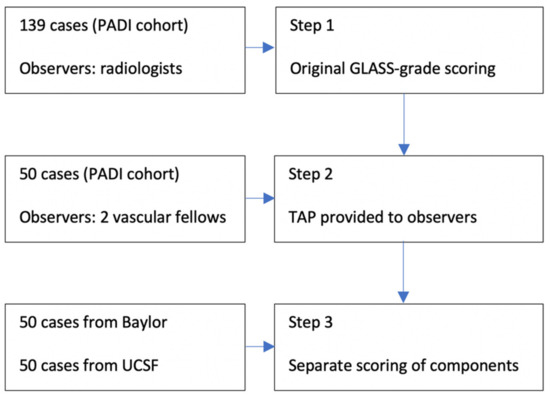 Step 2 consisted of a second scoring series by two vascular surgery fellows in the UCSF Medical Center (San Francisco, CA, USA), where diagnostic angiographies are incorporated in standard patient work-up and daily clinical practice. A total of 50 random cases from the same PADI cohort were scored using the same method as in step 1; however prior to scoring each limb, the TAP was predefined and provided to both independent observers.