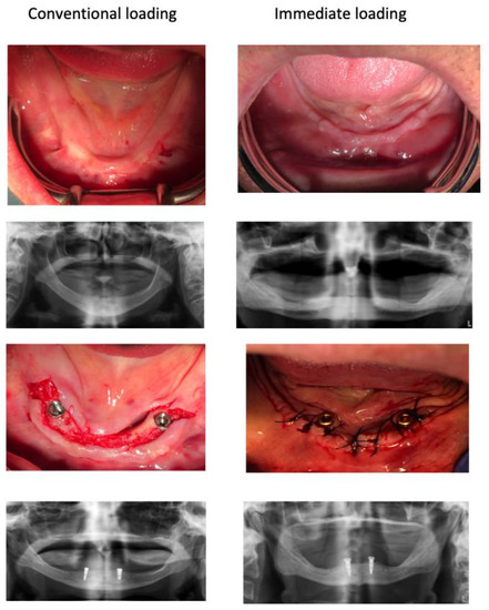 - Omura, Y.; Kanazawa, M.; Sato, D.; Kasugai, S.; Minakuchi, S. Comparison of patient-reported outcomes between immediately and conventionally loaded mandibular two-implant overdentures: A prelimiary study. J. Prosthodont. Res. 2016, 60, 185–192. [Google Scholar] [CrossRef] [PubMed] [Green Version]