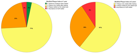 - Modified plaque index (mPLI) recorded in an ordinal scale between 0 and 3 (0: no plaque visible; 1: plaque only visible after the insertion of the probe; 2: plaque visible with the naked eye; and 3: abundance of soft matter) [20];